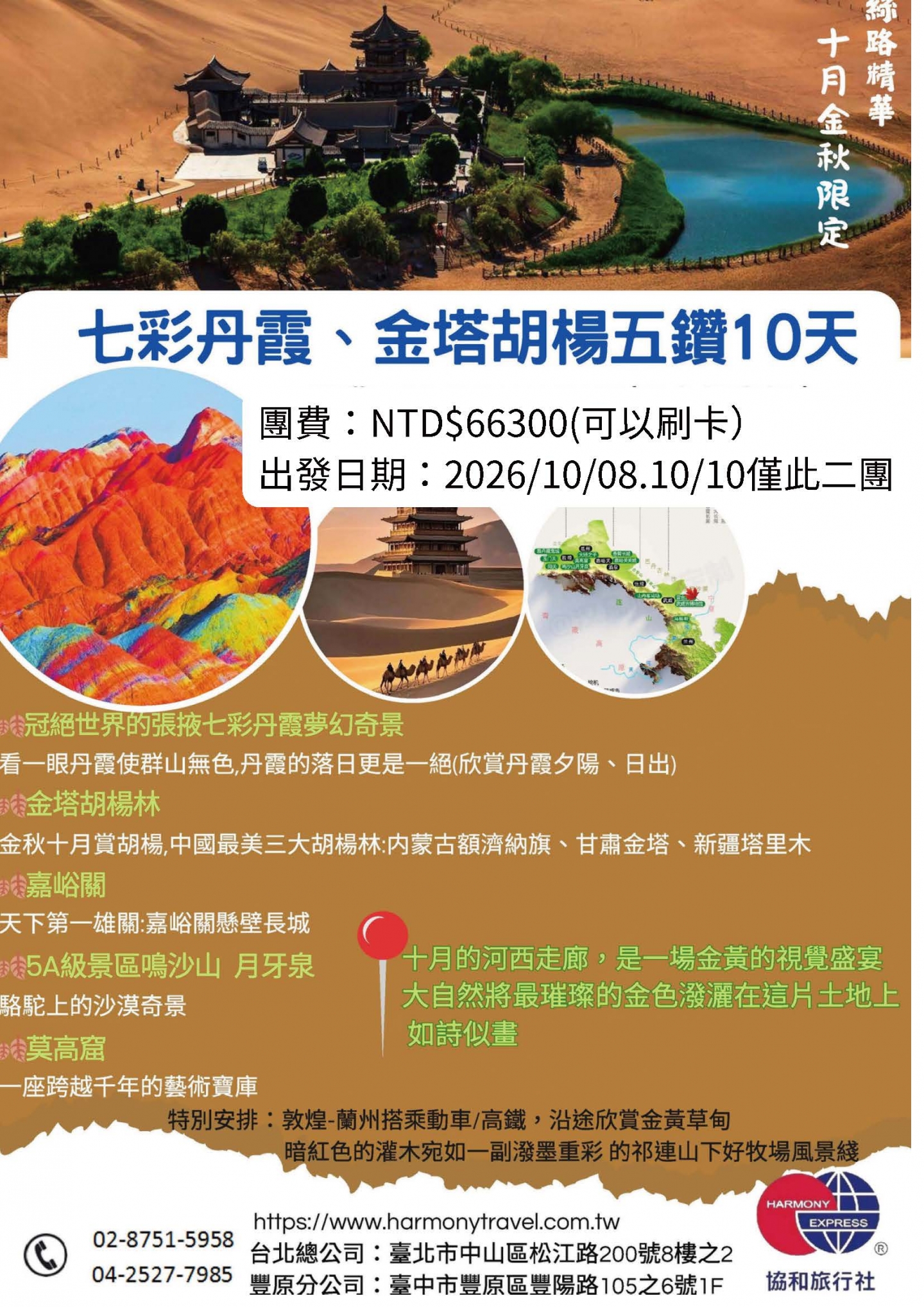 C25:七彩丹霞、金塔胡楊、西安風華五鑽12天
